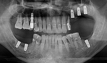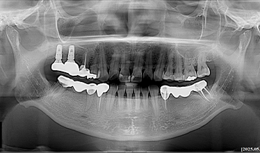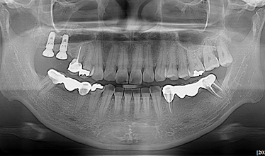 자가뼈 일부를 떼어서 붙이거나 인공뼈를 이식하고 임플란트를 식립합니다.